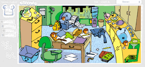 Illustrations by Martha Newbigging for Zoog (2001), Disney Channel's online family game space. Concepts based on supporting Disney Channel pre-teen tv shows with Flash web games. Art direction and programming by Bitcasters, Toronto. All characters and scenes are hand-drawn, digitized and converted for use in Flash. Most elements were programmed to move or 'do something' based on the user's actions and required multiple drawings to animate the change.