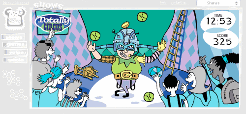 Users first 'assemble' their star juggler from an assortment of mismatched costumes and heads. Then advance to the circus tent where they manipulate the character's arms in an attempt to juggle an increasing number of tennis balls. If a ball is dropped, the audience 'boos', but getting a high score makes the audience 'cheer'.