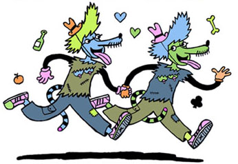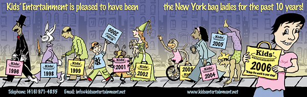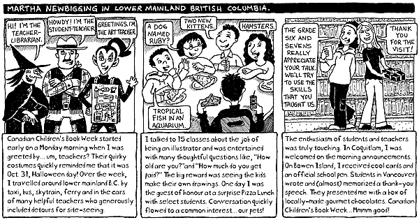 Team Run Amok t-shirt illustration for Pride & Remembrance Run, 2007 Kids' Entertainment 10th anniversary double page magazine ad, 2005 Ecard & Storybuilder art created for ZincRoe to be used on the Toronto Public Library's "KidsSpace" website, 2006 Comic drawn for report on Book Week Tour 2005 Hockey jersey illustration for Prince Edward County Women's Hockey league, 2005 Icon illustrations for CoolWomen website Editorial illustrations for Printers Conference brochure